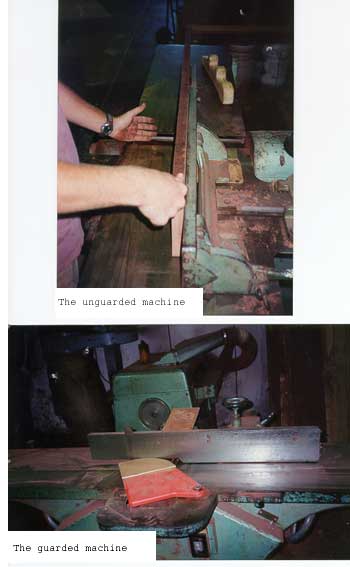 The injured person was a 16 year old student from a nearby High School who had previously undertaken a work experience placement at the defendant's premises. During his work experience placement, the student successfully used an electric planing machine or buzzer, to plane the flat sides of some timber. The buzzer consists of a rotating blade set in a metal table. The timber to be planed is slid across the table where it comes into contact with the rotating blade. When planing the flat sides of the timber, a push stick was used. At the completion of the work experience placement, the defendant offered the student casual employment for a period of two weeks. On 18 January 1999, the student was using the buzzer to plane the edges of some timber. It was not possible to use a push stick for this task. It would appear that his hand slipped off the timber and struck the rotating blade of the buzzer (see the picture of the unguarded machine). As a result, he suffered traumatic amputation to all four fingers of his left hand. The buzzer was purchased by the defendant in or about 1992 and was not fitted with a guard. Following the accident, the buzzer was fitted with a guard at a cost of approximately $150 (see picture of the guarded machine). The defendant pleaded guilty.