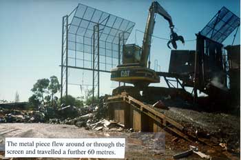 On 17 June 1997 a complaint was received by WorkSafe Western Australia that a solid piece of steel had come from the direction of the defendants workplace located on the adjoining property. The piece of steel struck a "sea tainer" and then landed on the ground near a person.