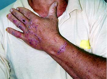 It was during this task that the liquid caustic soda came into contact with the injured persons left forearm and hand, as shown in the photograph, and also an area on his right leg. This contact resulted in chemical burns so severe that the injured person was conveyed to Royal Perth Hospital where subsequent medical surgery and skin grafting was required. The injured person was off work for about 6 weeks.