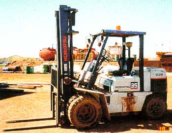 The deceased person was employed by the defendant as a general labourer. His functions were to assist in the loading of trucks with ammonium nitrate, general labouring duties and yard work. On the day of the fatality, the deceased was working with another employee on a general clean up of the yard. The other employee was driving the forklift shown in the photograph while the deceased was standing on a pallet mounted on the forks, and a 44-gallon drum was also on the pallet for any rubbish they collected. The other employee stopped the forklift in front of a storage shed, the deceased got off the pallet, picked up a bag, placed the bag into the drum and again stood on the pallet. The driver reversed the forklift from the shed, he used the brake to stop the vehicle, and looked down to change gear from reverse to forward, when he looked up he saw the deceased fall onto the ground. The driver turned the steering wheel sharply to miss the deceased with the dual drive wheels of the forklift, but not realising how quickly the forklift turned, the right rear steering wheel went over the deceased, and proved fatal. The defendant pleaded guilty. The penalty was imposed under section 19(7).
