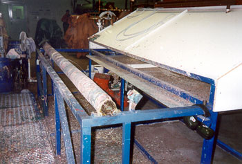 On 5 May 1997 an employee of Gosh Leather, suffered a soft tissue injury to her right arm when it was caught between the front roller of the string conveyor shown in the photograph and the framework. Typically when in operation there is a series of strings around the front roller to create the conveyor.